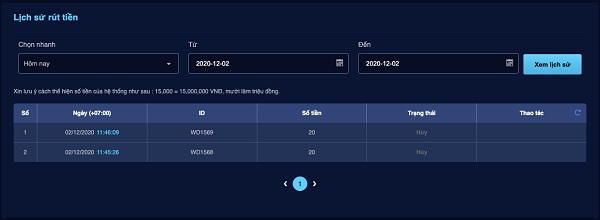- Số dư hợp lệ: Số dư tài khoản hiện có của người chơi phải lớn hơn số tiền muốn rút.