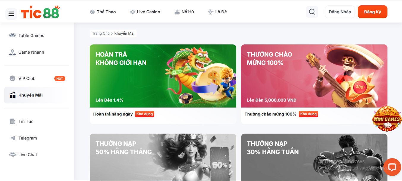 Với một loạt các sự kiện và ưu đãi hấp dẫn được tổ chức thường xuyên, Tic88 đã làm hài lòng ngay cả những người chơi khó tính nhất. Một số khuyến mãi phổ biến tại Tic88 đó là:
